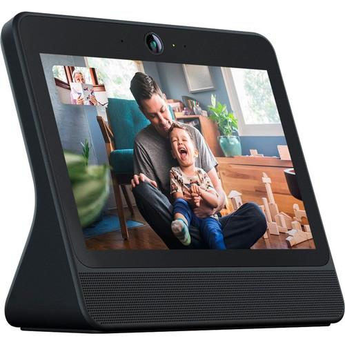 Product description Video chat with friends and loved ones with the black Facebook Portal. It features a 10.1" 1280 x 800 touchscreen with a four-microphone array, plus a 720p camera with 8x zoom. The camera can follow you around the room and zoom in or out to keep those in the room in the frame. The four-microphone array allows the Portal to pick up your voice from nearly anywhere in the room, and with Amazon Alexa built-in, you can ask the Portal questions, set timers, add items to your shopping list, control your compatible smart home devices, and more. A camera/mic off switch disables their functionality, and a physical lens cover is also included to further alleviate your privacy concerns. Note: Content acquired via certain apps may require subscription to a service. Not all services are available in all areas. Wi-Fi connectivity and a Facebook account are required for initial setup. US English is the only supported language at this time. Certain Alexa- and location-based features will have limited functionality outside the US. Please see the manufacturer's website for more information. - Follows the Action