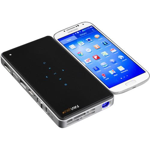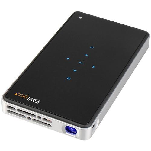 Product description The Favi Entertainment PICO+ J6-LED-PICO FWVGA DLP Projector delivers high-resolution images and wireless connectivity. This DLP projector supports screens up to 100" and sports an 854 x 480 native resolution. It also has a 100 lumen light output and a 1.19:1 throw ratio. With built-in DLNA, AirPlay, and Miracast support, you can wirelessly share content with compatible devices such as smartphones and tablets. The LED light source in the projector lasts up to 30,000 hours, and its built-in 5000mAh rechargeable battery lasts approximately 2 hours in projection mode (up to 3 hours in eco mode).