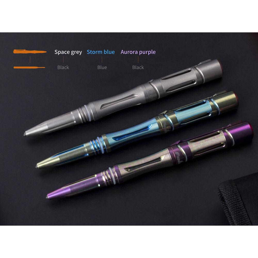 Product description The Fenix Halberd T5Ti Tactical Pen is both a handsome implement that can write at any angle, even underwater, and a self-defense tool capable of breaking strong glass or wounding an attacker. Made of CNC-machined Tc4 titanium and offered here in aurora purple, the pen is equipped with a tungsten steel alloy strike bezel, and comes loaded with a Schmidt P950M pressurized ink cartridge. In anticipation of its desirability as a collector's item, each one comes stamped with a globally unique serial number. The cap is fitted with a hard-style clip to keep the T5Ti securely in your pocket. -