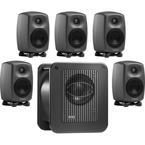 Product description The compact Genelec 8020D ESPRESSO 4" Active 5.1 Monitoring System with 8" Subwoofer includes five 8020D studio monitors and a 7050C subwoofer. Small in dimension, the system is designed to provide accurate sound reproduction with extended low end, for near-field monitoring when space is limited. The 8020D is a 4" two-way active studio monitor equipped with a 50W woofer amplifier and a 50W tweeter amplifier. Its die-cast aluminum enclosure features Minimum Diffraction Enclosure (MDE) technology, which improves the flatness of the frequency response and the power response of free-standing loudspeaker systems. The speaker employs Directivity Control Waveguide (DCW) technology to minimize early reflections, make the sound directivity uniform and smooth, and provide color-free and accurate reproduction.The 7050C is an 8" active subwoofer ideally matched with the 8020D speakers in both stereo and multichannel audio formats. It delivers 130W of power and extends the low frequencies down to 24 Hz. The subwoofer features the company's Laminar Spiral Enclosure (LSE) technology and provides enhanced, color-free low end. - 8020D Studio Monitor (Producer Finish) Styled in what the manufacturer has dubbed a "Producer Finish", and now utilizing Class-D amplification, the Genelec 8020D Active Two-Way 4" Studio Monitor provides an accurate reproduction of the source material in a compact form factor. Its die-cast aluminum enclosure features a rounded shape, which minimizes frequency and reflection distortions caused by edge diffraction. The metal dome tweeter is surrounded by Genelec's Directivity Controlled Waveguide, which helps to create an even response when listening both on and off axis.