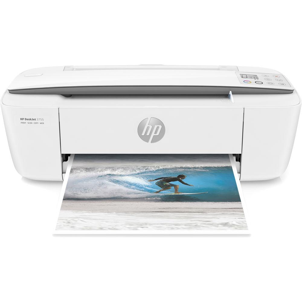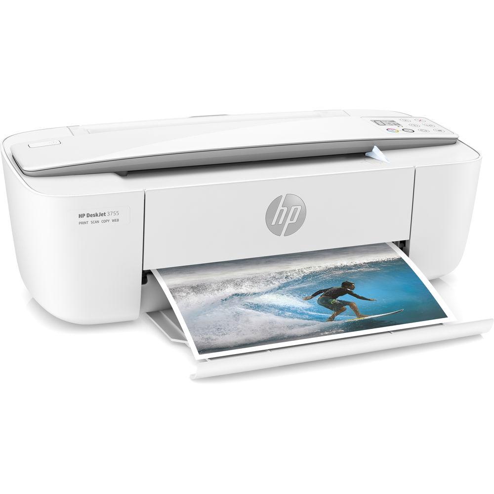 Product description Save space while updating your home office with the wireless white DeskJet 3755 All-in-One Inkjet Printer from HP. This Instant Ink Ready printer offers excellent print performance with a resolution of 4800 x 1200 dpi and speeds of 8 ppm in black and 5.5 ppm in color. It also features a single-sheet ADF scanner with an optical resolution of 600 dpi for creating both scans and copies. On top of all this, it features a 60-sheet input tray which can handle a variety of documents from 3 x 5" up to 8.5 x 14" in size.