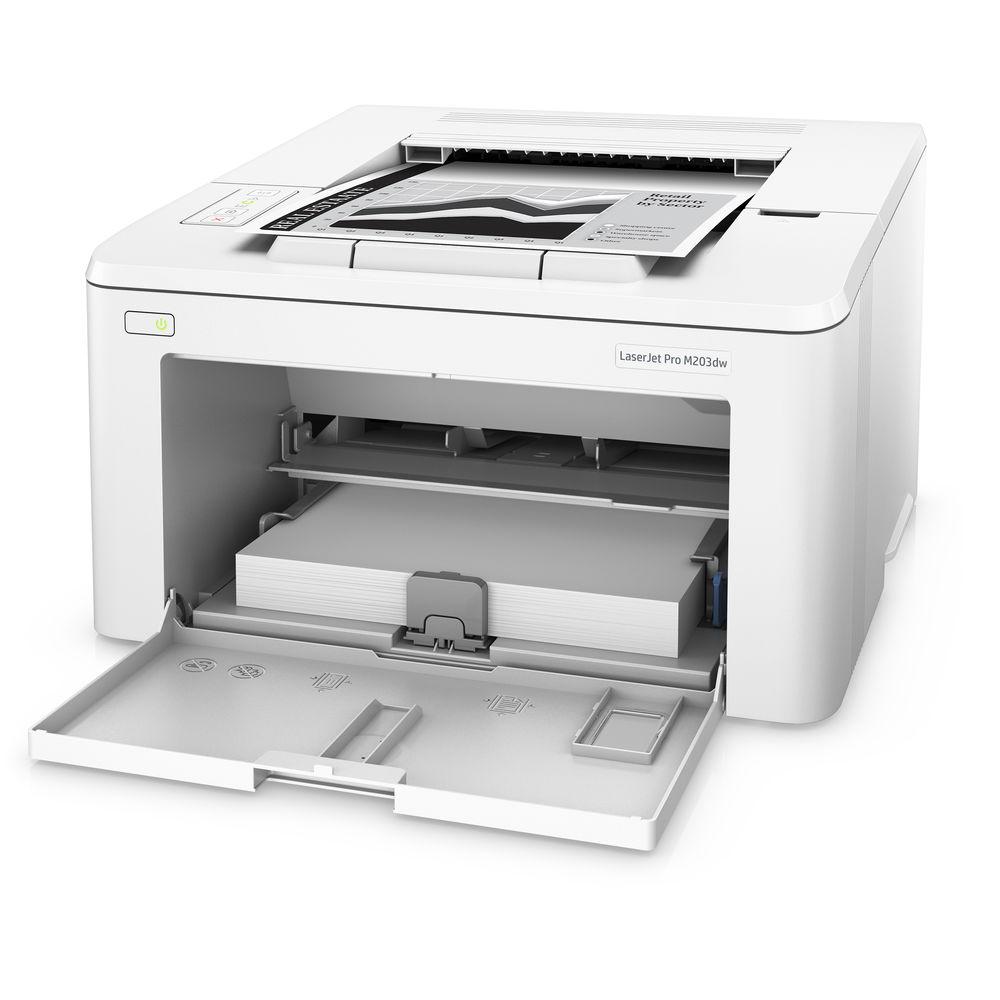 Product description Boost the printing capabilities of your home or small office with the 30 ppm speed of the wireless LaserJet Pro M203dw Monochrome Laser Printer from HP. Able to produce up to 30 ppm, or 18 ppm when printing two sided, the M203dw is a very capable unit. It also features USB 2.0, Ethernet, and Wi-Fi connectivity for setting up in nearly any position, as well as for direct printing from a smartphone or tablet. With a resolution of up to 1200 x 1200 dpi and the ability to work with documents from 3 x 5" to 8.5 x 14", users will be able to improve productivity very easily.
