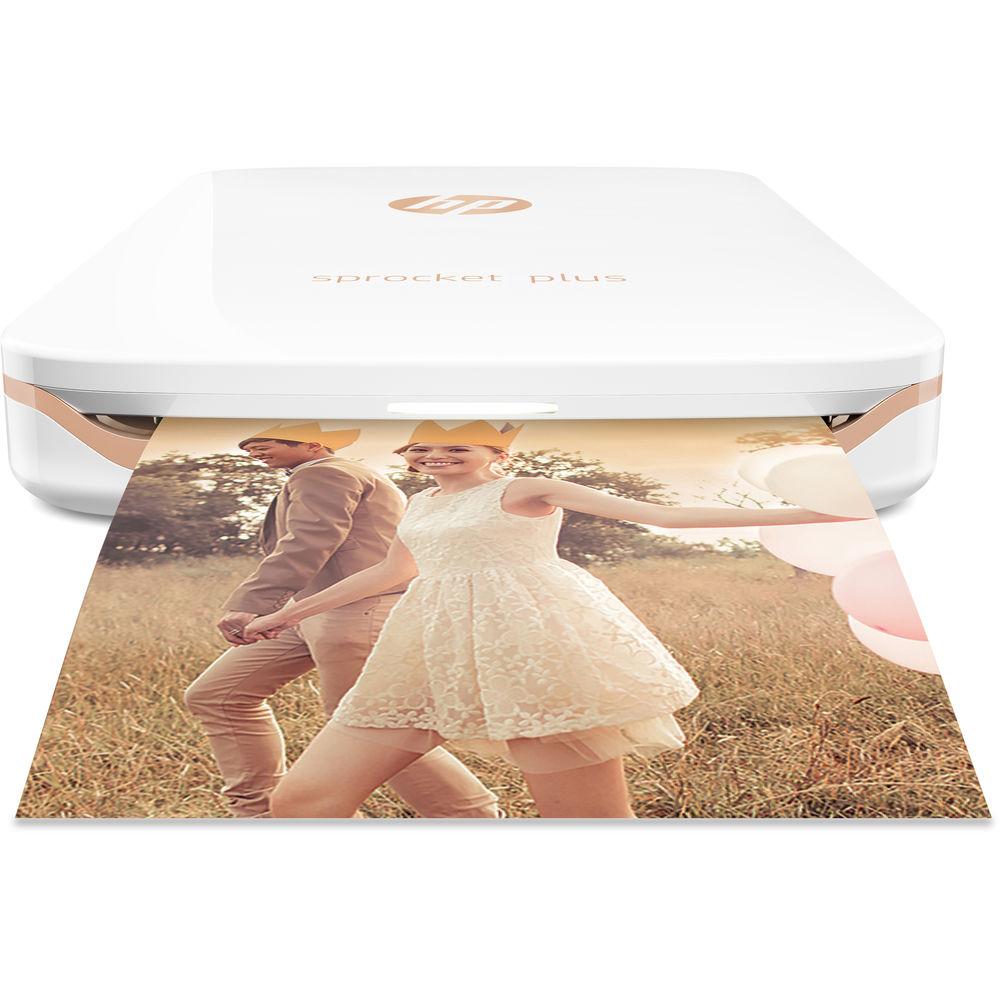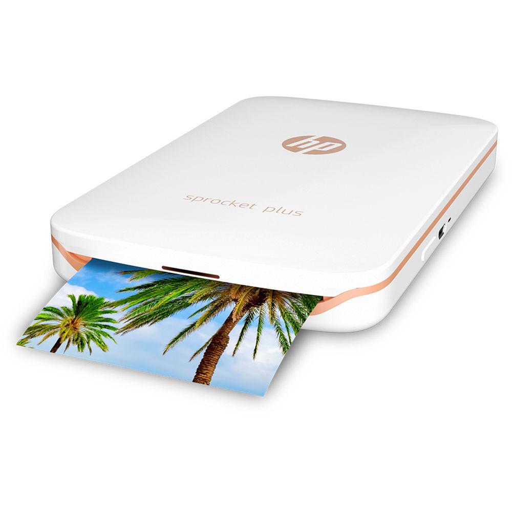 Product description Print on the Road with these Six Portable Printers Read More Take the digital memories stuck on your smartphone and turn them into tangible, physical prints wherever you go with the white Sprocket Plus Photo Printer from HP. Super compact and weighing just 0.45 pounds, the Sprocket Plus is designed to go with you everywhere so you can immediately share borderless prints with your friends as you make new memories. Also, it uses a dedicated companion app for iOS and Android that allows you to set up print jobs, add filters, edit your photos, and pull images from social media.