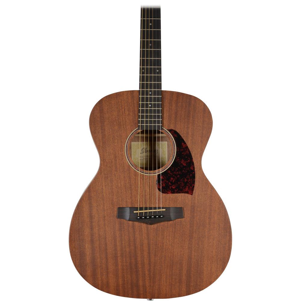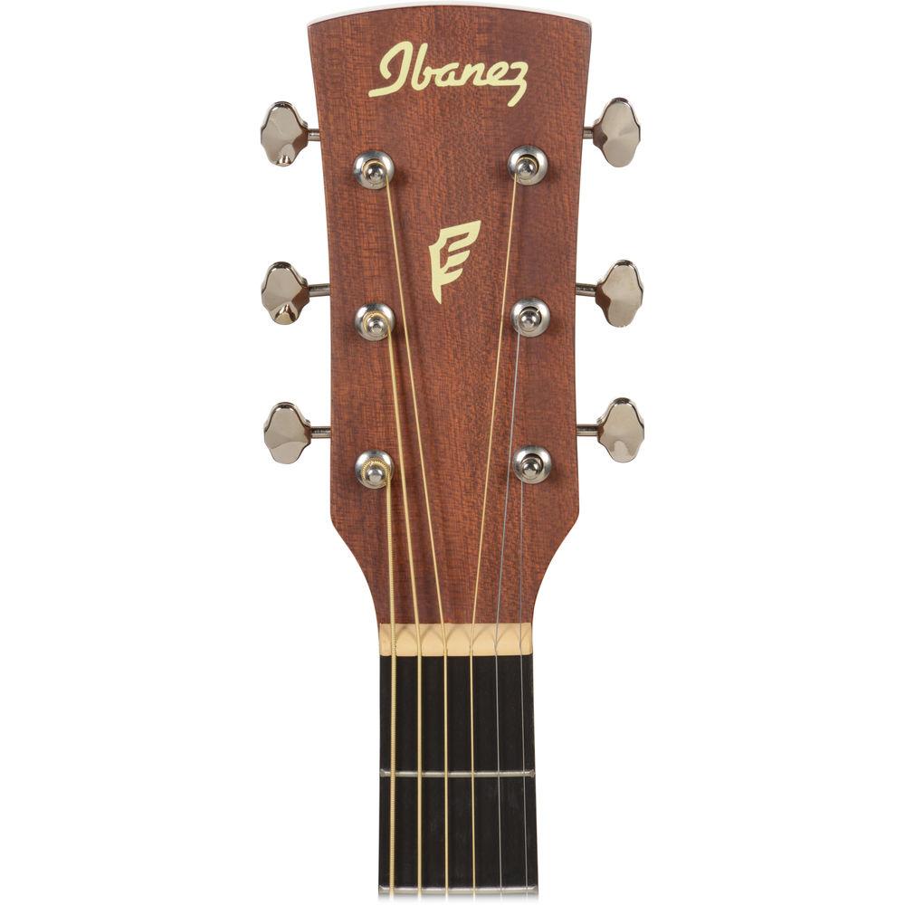 Product description Styled in a natural open pore finish, the PF Performance Series PC12MH from Ibanez is a grand concert style acoustic guitar. Its body features a mahogany top, a mahogany back, and mahogany sides. Its neck, measuring 24.96" in scale, is also fashioned of mahogany, sporting a 20-fret rosewood fingerboard with dot inlays, and includes a set of chrome open gear tuners with butterbean knobs for a vintage look and tuning stability.