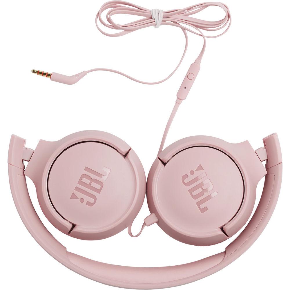 Product description Styled in pink, the JBL TUNE 500 are wired on-ear headphones with 32mm drivers and JBL Pure Bass for a hefty sound. They offer a frequency response of 20 Hz to 20 kHz, as well as a foldable design for easy transportation when they're not in use.