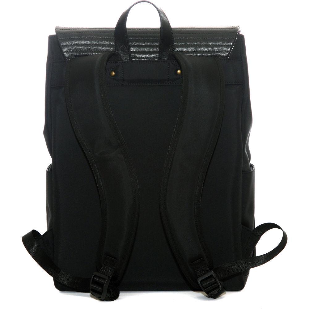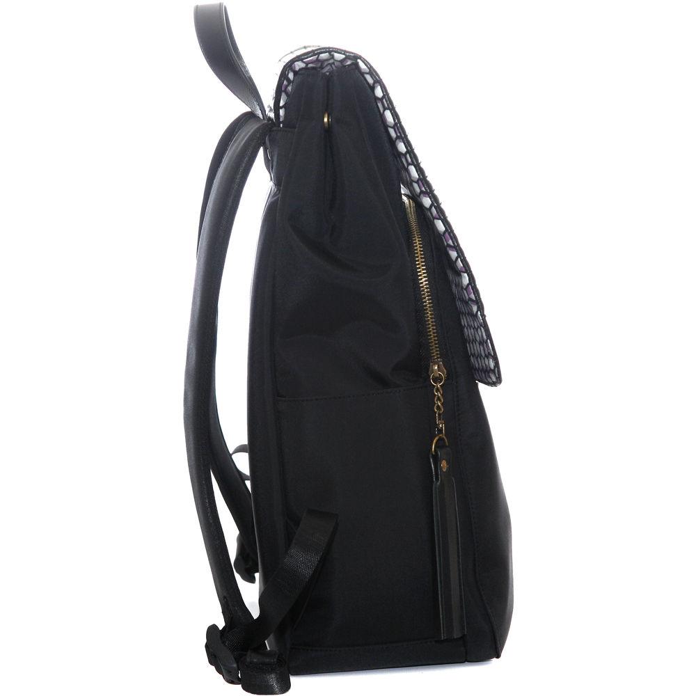 Technical parametersJill-E Designs 473325 Specs | | | Product Type | Notebook carrying backpack | | Product Material | Nylon, leather | | Width | 11 in | | Depth | 5 in | | Height | 14.3 in | | Weight | 20 oz | | Notebook Compatibility | 13" | | Additional Compartments | Cellular phone, pens, sunglasses, tablet | | Closure Type | Push button front closure | | Color | Black | | | | Package Weight | 3.5 lb | | Box Dimensions (LxWxH) | 17.1 x 14.7 x 7.9" |