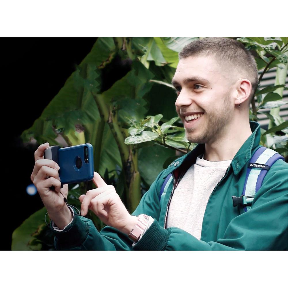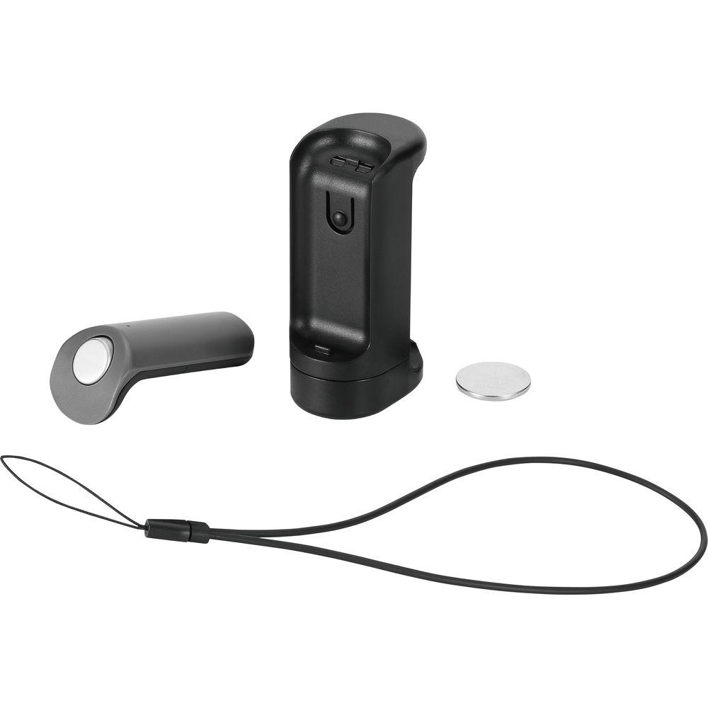 Compatible with most devices running iOS 9.0 and later or Android 5.0 and later, the black ShutterGrip from Just Mobile pairs itself to your phone using Bluetooth 4.0+ technology and helps transform your smartphone into a serious camera. It physically attaches to your phone using a tensioned grip, which can be attached whether or not your phone is housed in a case, and serves as both a solid, ergonomic handle and a wireless shutter button. Thanks to a tripod screw, lanyard hole, and a non-slip grip, the ShutterGrip helps make the process of attaching accessories more user-friendly. Additionally, its modular design allows the shutter button to be removed and used as a remote control for selfies, videos, and time lapses. All of this helps to eliminate shaky, blurry images and other photographic fumbles. The Just Mobile ShutterGrip automatically turns itself off after three minutes of idling, and will wake up with the press of a button. Included is a wrist strap and a CR2032 battery, which will last for around 180 days, assuming it is used for 500 exposures per day. Protection is provided by a limited one-year warranty. General Features - Auto connection and auto power-off after 3 minutes