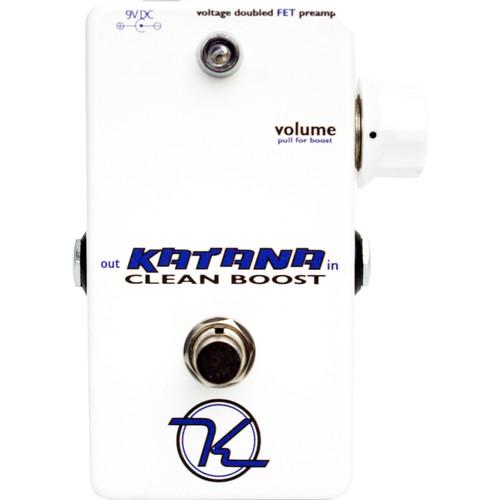 Product description One of Keeley's most famous pedals (if not the most famous) is the Katana Clean Boost Pedal. Its offset volume knob and stark white enclosure is immediately identifiable by pedal fanatics. While the unique positioning of the knob is certainly noticeable, it serves a very practical purpose. Adventurous guitarists can adjust the level of clean boost with their feet, without the aid of a pedalboard-real-estate-hogging expression pedal. Sonically the Katana accurately retains your guitar's tone through its cascading FET circuit, great for driving your amp harder without sacrificing your core sound. Pull out the knob, and add more gain and edge to your tone. It's not saturated like an overdrive or a distortion pedal, but it brings a subtle tube-like grit to your volume boost. Controls - Volume: The only control on this pedal adjusts the output volume, pull the knob out for an additional boost up to 35 dB