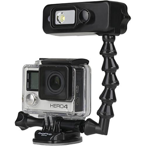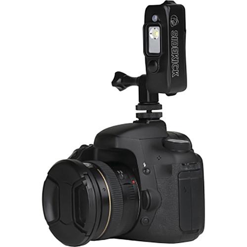 The Sidekick uses a simple bolt extender to attach to the opposite side of a GoPro thumbscrew, making the Sidekick compatible with virtually every GoPro mount. Out-of-the-box it mounts vertically on the side of the camera, but it can also be mounted above the camera using the optional Dive Arm Mount Kit. Other optional accessories include a Cold Shoe/Tripod Kit for mounting on a DSLR or tripod, and a GoPro Mount Adapter for direct mounting to a GoPro three-prong mount.