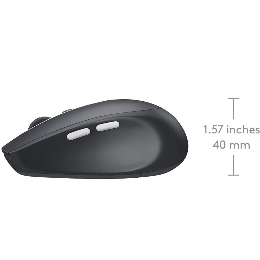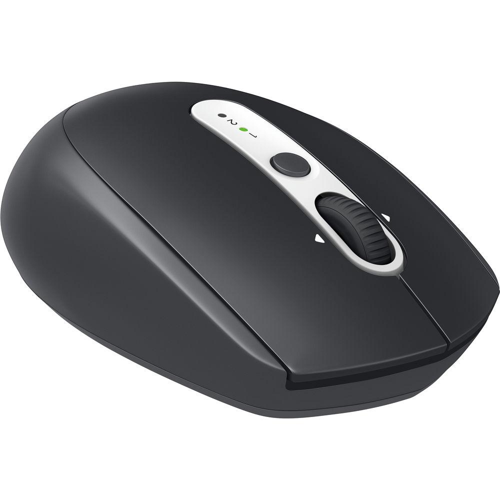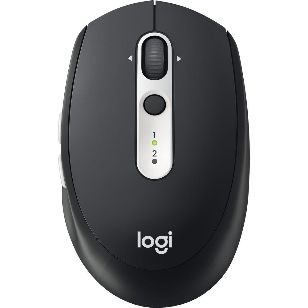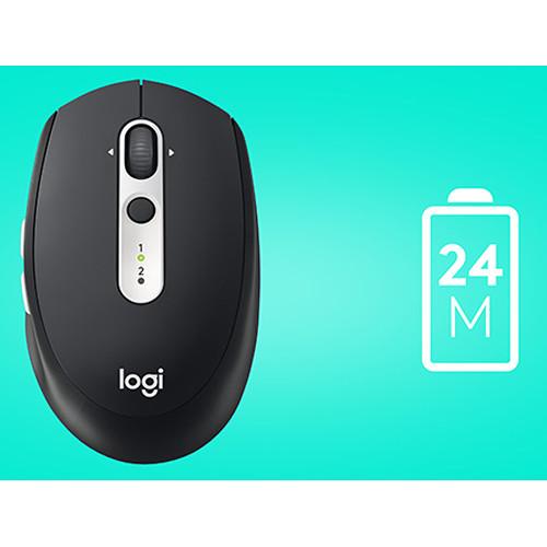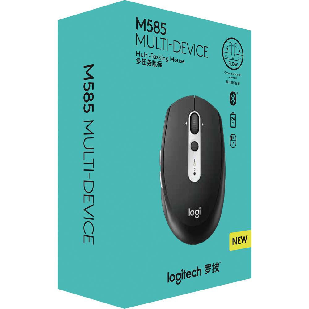 Product description The graphite M585 Multi-Device Wireless Mouse from Logitech is designed with multitaskers in mind. With the Logitech Flow software, this mouse lets you switch between two computers and even supports copy-pasting from one to the other, even if you're using a PC and a Mac. Install the software on both systems, connect the mouse via the included nano receiver or Bluetooth, and click the dedicated Easy Switch button to switch between systems. For your convenience, it also features two thumb buttons, mapped to forward and backward for web browsing, which you can customize if needed. The M585 is powered by a single AA battery that can last for up to two years depending on use. - Multi-Tasking At Its Finest