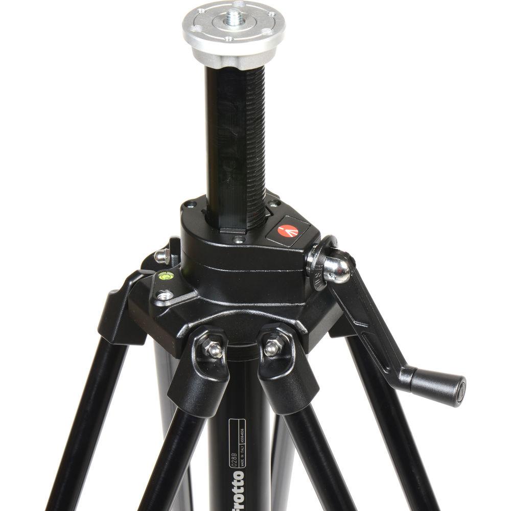 Technical parametersManfrotto 028B Specs | | | Load Capacity | 26.5 lb / 12 kg | | Maximum Working Height | 89.4" / 227.1 cm | | Max Height without Center Column | 70.5" / 179.1 cm | | Minimum Working Height | 30.4" / 77.2 cm | | Folded Length | 32.3" / 82 cm | | Head Mount Type | 3/8"-16 Screw | | Weight | 9.2 lb / 4.2 kg | | Materials | Aluminum Alloy | | Bubble Level | Yes | | | | Leg Lock Type | Wingnut | | Independent Leg Spread | No | | Leg Sections | 3 | | Feet Features | Spiked | | | | Center Column Features | Center Brace | | Center Column Sections | 1 | | Center Column Extension Type | Geared | | Lateral / 90-Degree Center Column | No | | | | Package Weight | 12.0 lb | | Box Dimensions (LxWxH) | 33.75 x 7.0 x 6.75" |