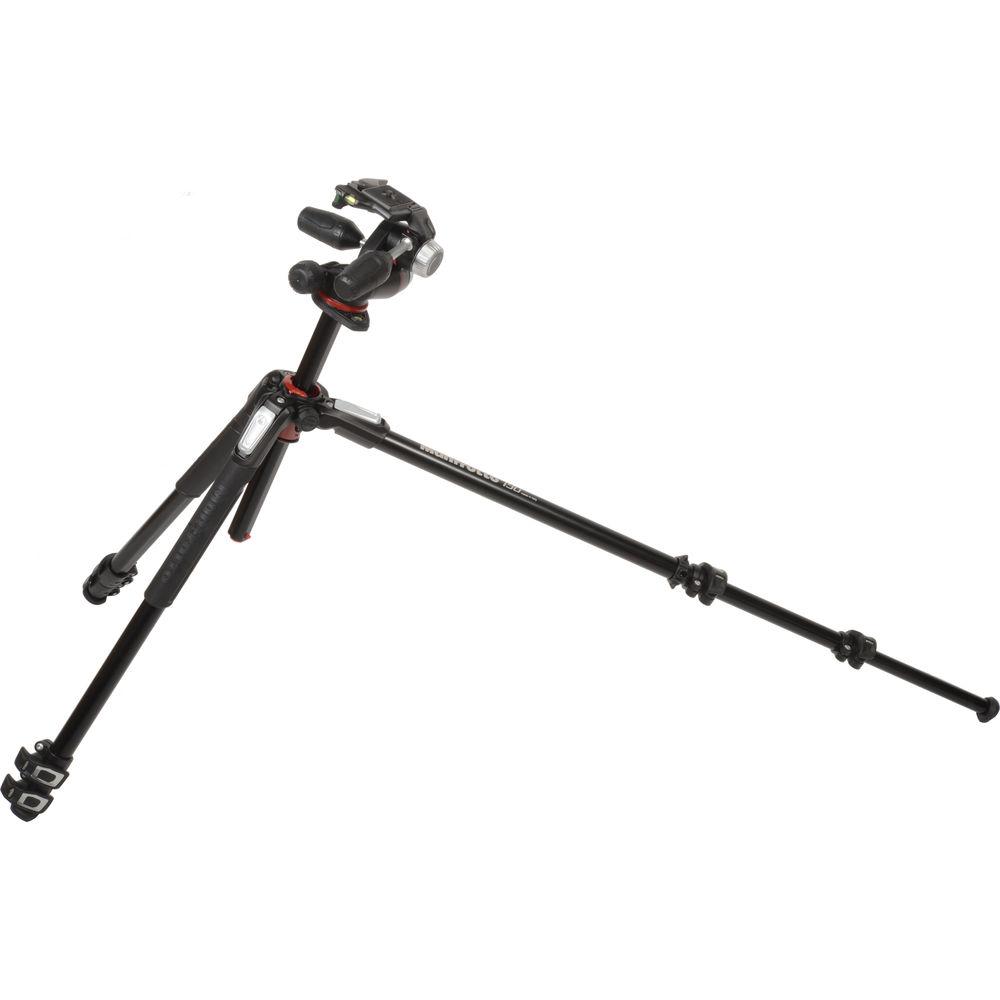 The Manfrotto MK190XPRO3-3W Aluminum Tripod with 3-Way Pan/Tilt Head combines the MT190XPRO3 tripod legs with the MHXPRO-3W 3-way pan/tilt head. The tripod has a load capacity of 13.2 lb, extends up to 68.1", and folds down to 28.4" for transport.