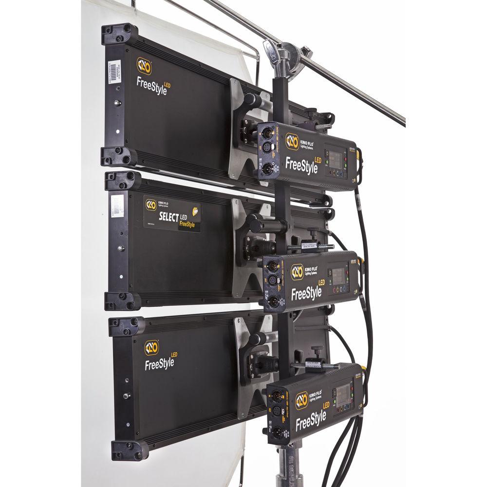 Product description Designed with Kino Flo fixtures in mind, the K-Stacker II from Matthews is a hefty accessory that can hold multiple fluorescent or LED panels to create a large and powerful light source. The design permits vertical mounting on a light stand, or downward mounting like a space light from a studio grid. You can mount up to three FreeStyle 31 LED panels, for example, or two 4 ft 4Banks in a row with their ballasts, controllers, or batteries. 4Bank fixtures can rotate from a horizontal to vertical orientation. In the Box Matthews K-Stacker II Limited 1-Year Warranty Table of Contents