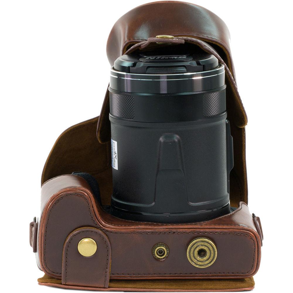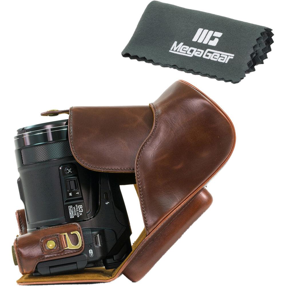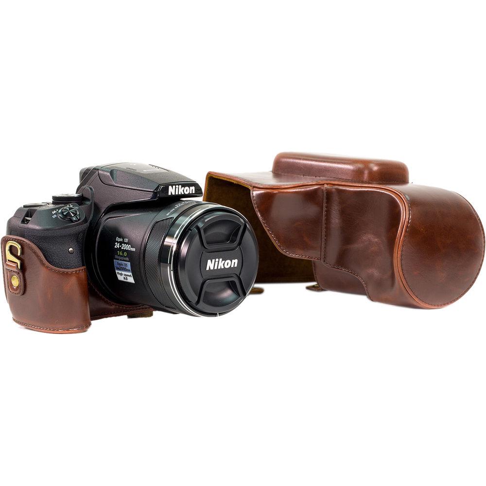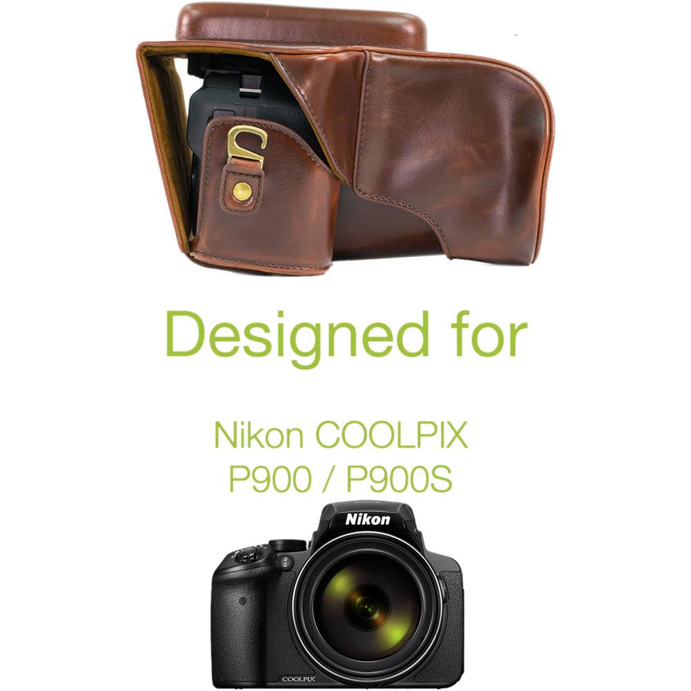 Product description Give your Nikon COOLPIX P900/P900S a touch of elegance while protecting it from dirt, scratches, and bumps with the dark brown Ever Ready Protective Case from MegaGear. This two-piece case consists of a top and bottom, as well as a matching carry strap. The bottom half may be used independently as a half-case, and attaches to the built-in tripod mounting screw. This screw is threaded on the bottom for convenient tripod usage without having to remove the case. The top piece completes the all-round protection and attaches with snaps. For style, this case has attractive stitching reminiscent of old world craftsmanship. The leather-like, sustainable polyurethane material reflects new world ecological sensibilities. Made of the same polyurethane, but with a suede-like finish, the interior softly caresses your camera while also protecting it from scratches. UPC: 689466844115 In the Box MegaGear Ever Ready Leather Camera Case for Nikon COOLPIX P900/P900S (Dark Brown) Carry Strap Limited 90-Day Warranty Table of Contents