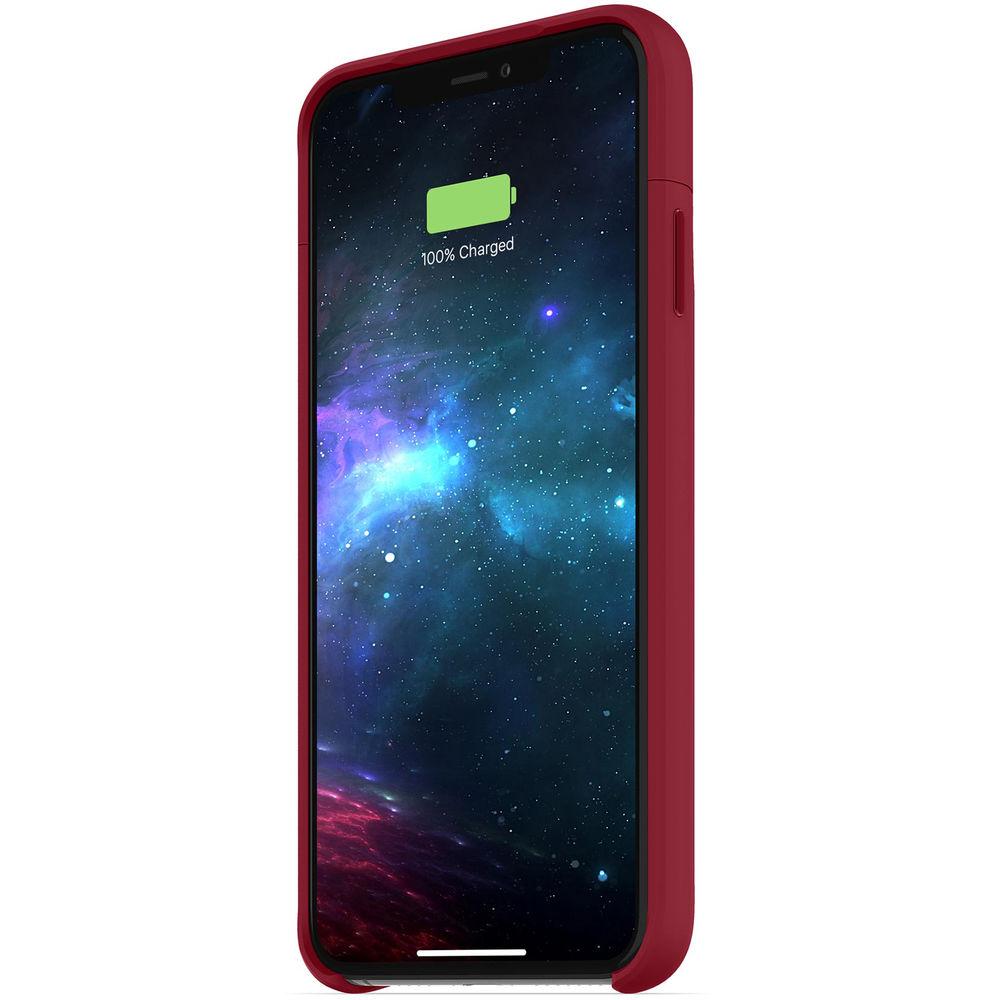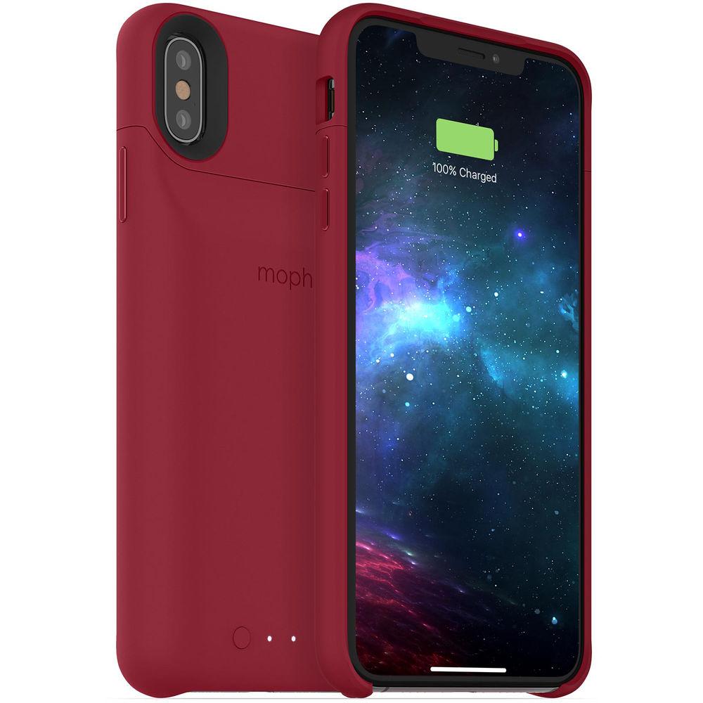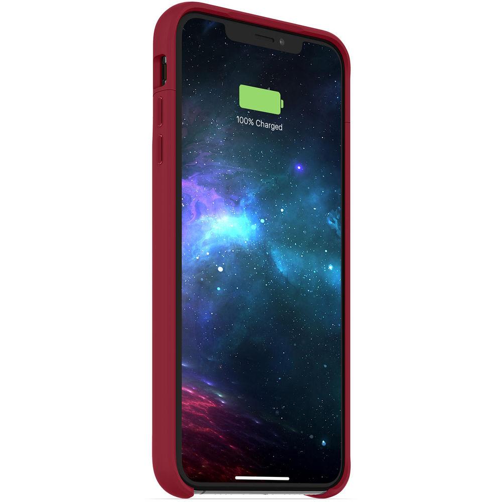 Product description Protect your iPhone Xs Max and add hours of battery life with the deep red mophie juice pack access. This ergonomic and form-fitting case is designed to fully protect your iPhone, while charging your device when its battery is low and still giving you access to your Lightning port and speakers. With its 2200mAh lithium-polymer battery, you get up to 31 hours of total battery life. When it comes to protection, this case features internal rubberized support pads to protect your iPhone Xs Max from drops and falls, while the raised corners help prevent scratches and cracks to your screen.Recharge the juice pack access by simply laying it on any Qi wireless charging pad or by plugging the included charging cable into the USB Type-C port. In addition, this charging case has built-in short-circuit, overcharge, and temperature protection, so you can charge with confidence. - With the Priority+ charging feature, your iPhone Xs Max will first get power before the juice pack access case when you recharge.