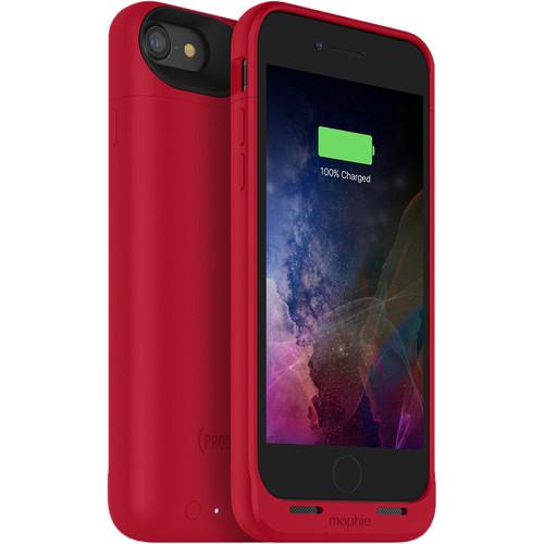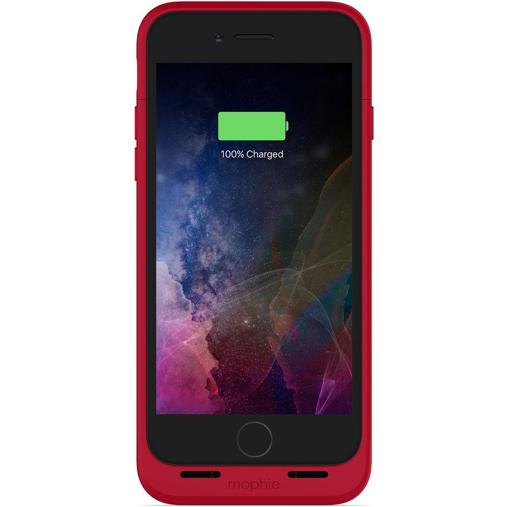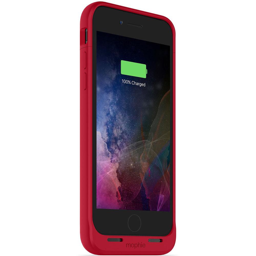 Product description Keep your iPhone 7 and iPhone 8 protected and charged with the mophie juice pack air Battery Case in PRODUCT (RED). This case features a built-in battery and protects your device's back panel and sides. The lithium-polymer battery extends your device's battery life up to a total of 27 hours, so you can stay connected for longer. Internal rubber bumpers absorb shock, and a raised front bezel lifts your screen away from dirt and dust when placed face down.