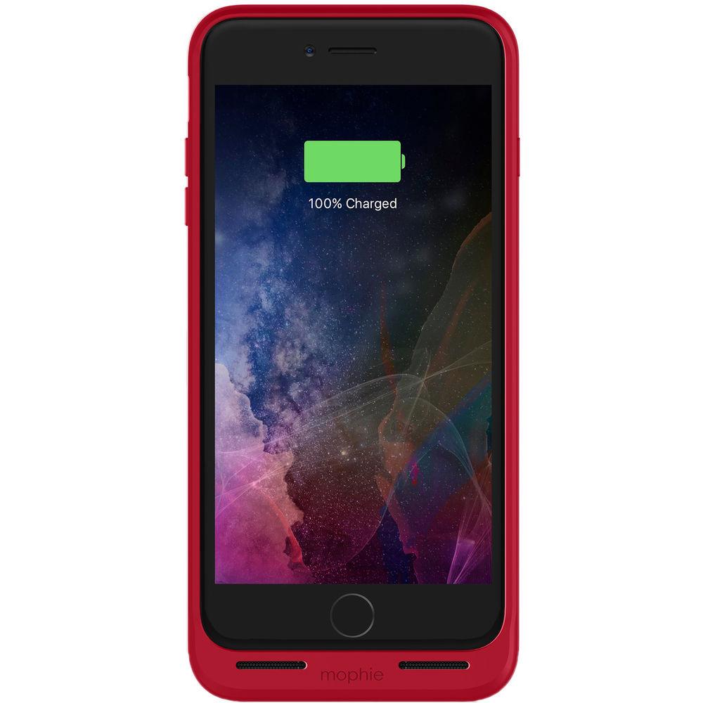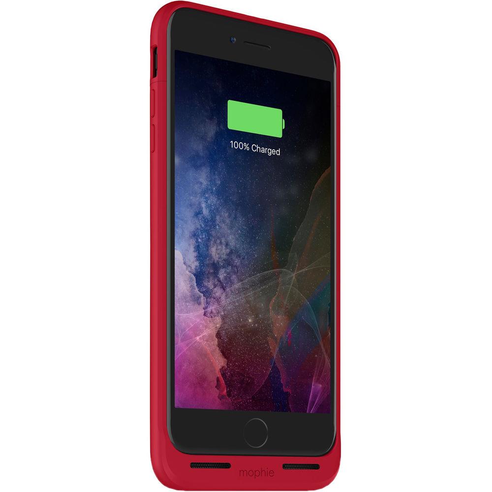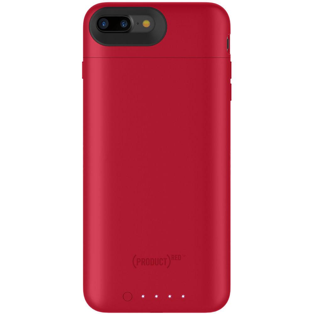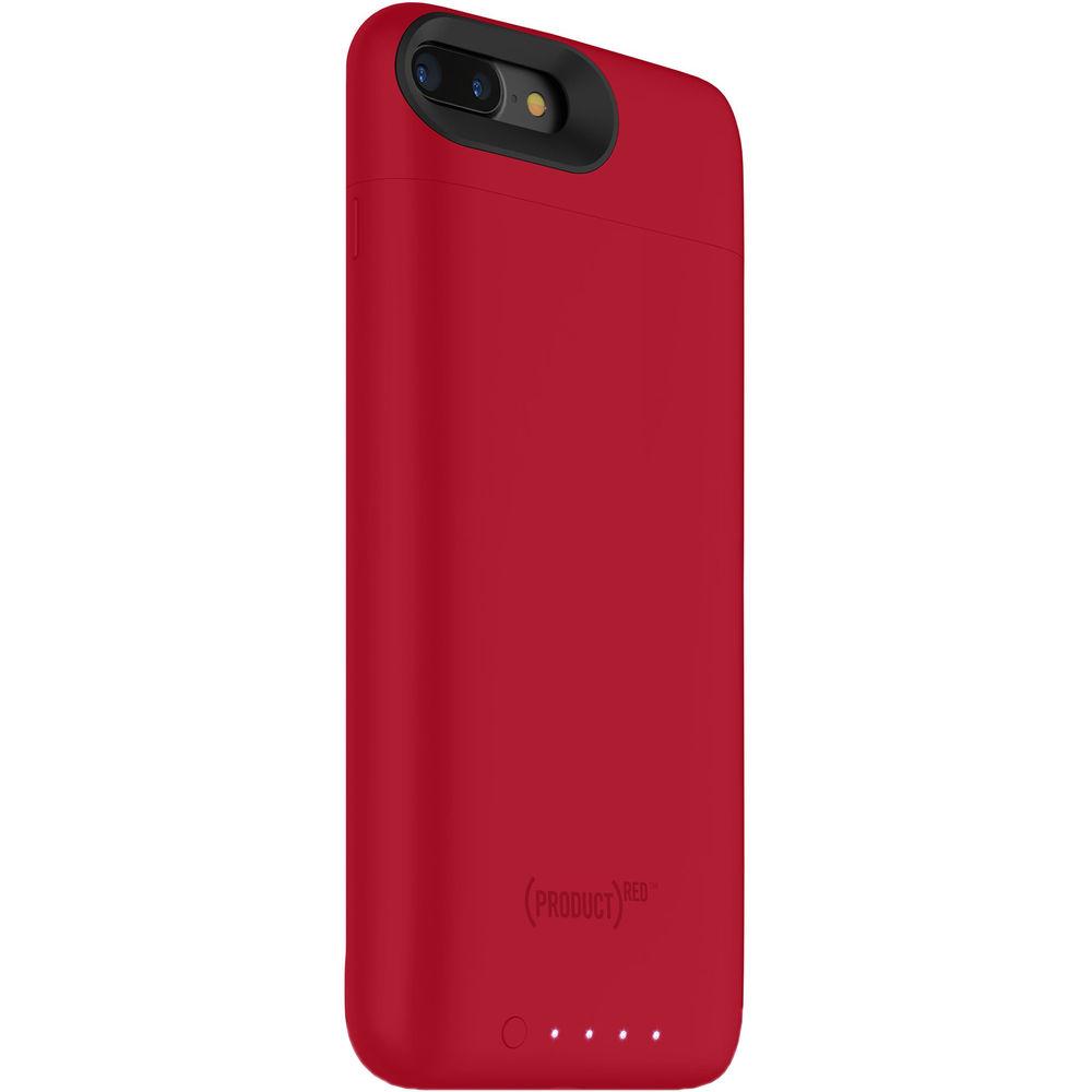 Product description Keep your iPhone 7 Plus and iPhone 8 Plus protected and charged with the mophie juice pack air Battery Case in PRODUCT (RED). This case features a built-in battery and protects your device's back panel and sides. The lithium-polymer battery extends your device's battery life up to a total of 33 hours, so you can stay connected for longer. Internal rubber bumpers absorb shock, and a raised front bezel lifts your screen away from dirt and dust when placed face down.