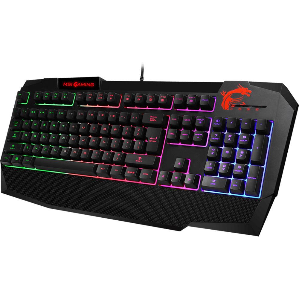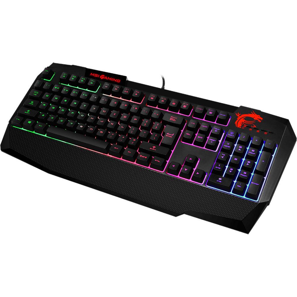 Product description The Interceptor DS4200 Backlit Gaming Keyboard from MSI is built with membrane switches featuring a mechanical-like feel and tactile feedback. It's also equipped with RGB LED lighting that you can customize to fit your style. Moreover, it has multimedia hotkeys for quick access to audio settings, anti-ghosting and 20-key rollover technology to help you with complicated multi-key commands, and a Windows Key lock to prevent accidental key presses from interrupting your game. - Mechanical-Like Feel