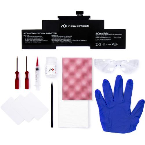 Product description The 95W NuPower Battery Replacement Kit for 15" MacBook Pro Retina from NewerTech is designed to help you remove your MacBook's glued-on OEM battery, so you can install a new one. This kit is intended for late 2012 to early 2013 15" MacBook Pro Retina models. Inside this kit, you will find an assortment of tools that are meant to aid in the replacement process, including a 95W NewerTech NuPower Battery, screwdrivers, safety glasses, a plastic card and syringe, adhesive remover, nitrile gloves, screen cloth, and nylon probe tool. Furthermore, you can get additional information regarding the installation process or battery care with NewerTech's downloadable guides. - The 95W NuPower Battery Replacement Kit for 15" MacBook Pro Retina is designed to make the task of upgrading or replacing your battery easy.