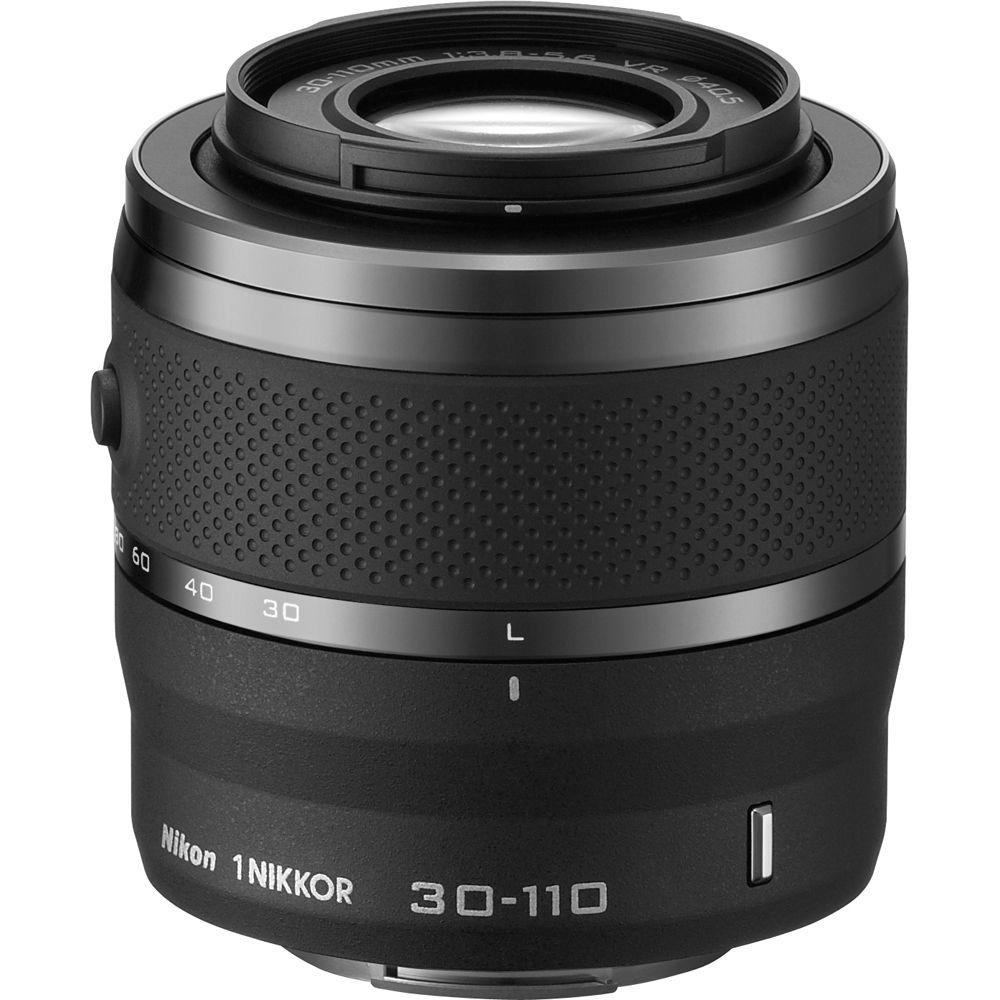 Product description Nikon's 1 NIKKOR VR 30-110mm f/3.8-5.6 Lens is a 3.6x zoom lens designed for use with the Nikon 1 CX format mirror-less cameras. Its 81-297mm (equivalent in 35mm format) range gives you a superb telephoto zoom lens, ideal for portraits, landscapes, sports, and action shots. The Vibration Reduction system makes it possible to shoot at much lower shutter speeds, with sharper results, than is normally the case. This is especially useful in low-light situations, and when using the longer part of the zoom range (where the slightest movement is magnified in an image). Using extra-low dispersion glass, Super Integrated Coating, and Vibration Reduction this lens delivers superb images, still or video. Internal focusing makes possible a smaller, lighter lens with a closer focusing distance. Coming in at less than 2.5" in length, and only weighing 6.2 oz this lens will never weigh you down. - Compact Telephoto
