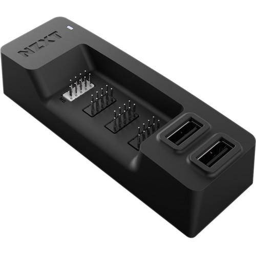 Product description Expand your system's USB 2.0 connectivity with an additional three internal ports and two external Type-A ports with the Internal USB 2.0 Hub from NZXT. This expansion hub can be used to connect liquid coolers, fan controllers, lighting accessories, and CAM-powered devices, such as Kraken, GRID+, HUE+ and more. It can transfer data at speeds up to 480 Mb/s and includes a dedicated Molex power cable that is able to power virtually any connected devices using your system's power supply. Thanks to its magnetic body and included cable management straps, NZXT's Internal USB 2.0 Hub can also be tucked away inside most computer chassis. Please bear in mind that your system must have a free internal USB 2.0 connector for this accessory to work. General Features - Provides five additional USB 2.0 ports - three internal and two external