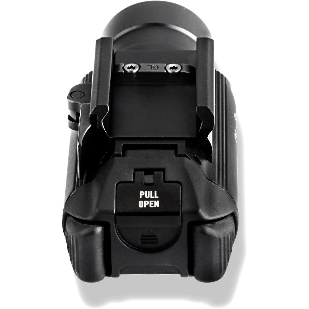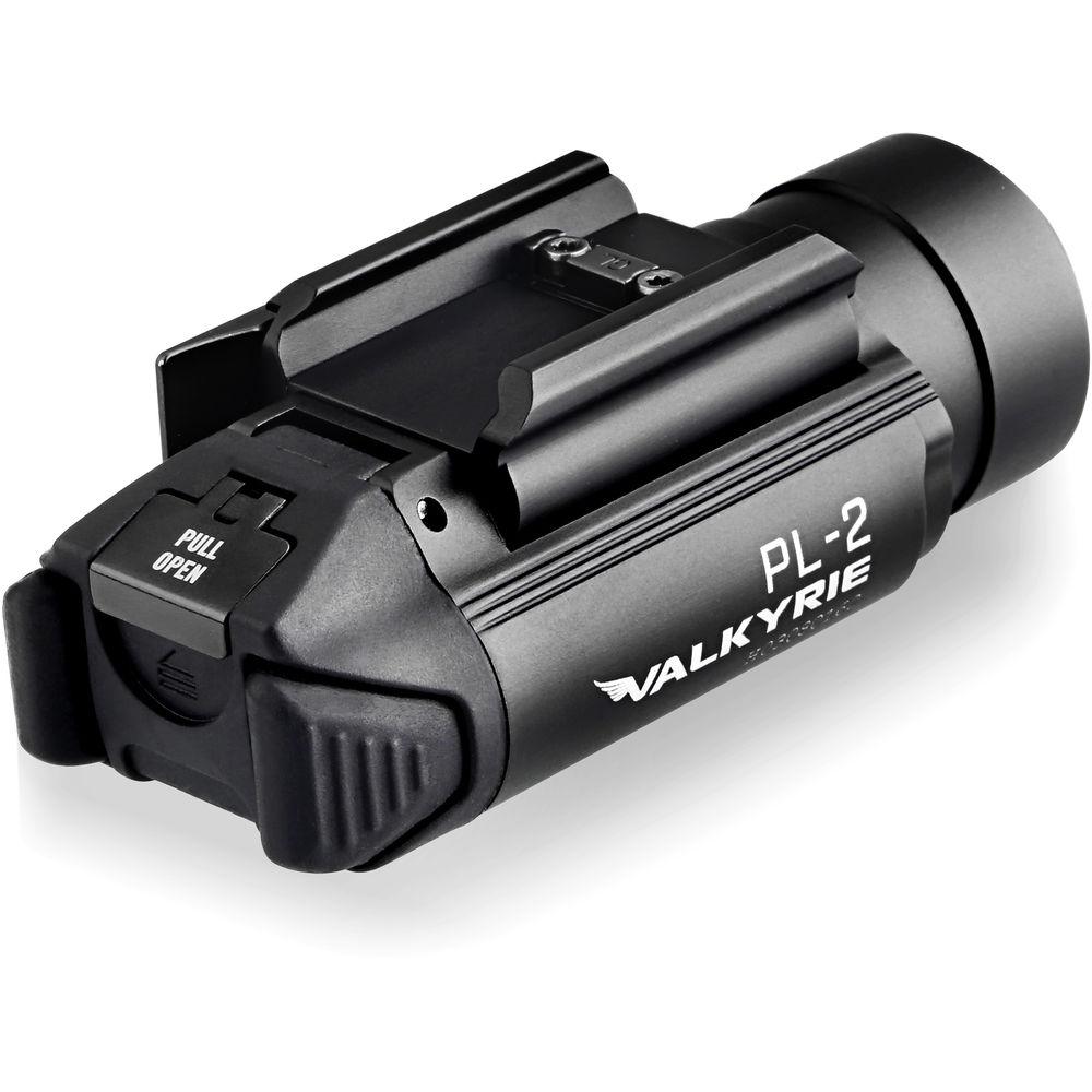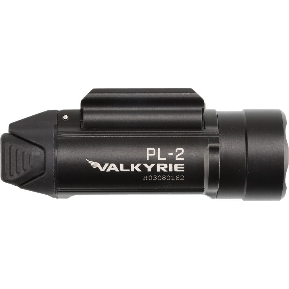 Product description Compatible with most handguns that have accessory rails, the PL-2 Valkyrie Weapon Light from Olight is a simple, dependable illuminator for tactical use. It runs on two CR123A batteries, yields 1200 lumens and is equipped with a disorienting strobe mode. The Valkyrie comes equipped to fit Glock rails, but is easily adjusted with the included adapter and T6/T8 socket head wrench to fit Picatinny rails. It locks quickly and securely in place with a stainless steel lever, and is designed with a dual spring system and insulated interior to protect the light from recoil or temperature changes. The silent push button switch is equally accessible from both sides: press and hold for momentary, click for constant-on, and click both sides together for strobe. The light's hard anodized 6061-T6 aluminum alloy housing is rated IPX6 and is water-resistant and impact-resistant to 3.3 feet. It weighs just 2.8 ounces and measures 3.3 x 1.4". - Performance