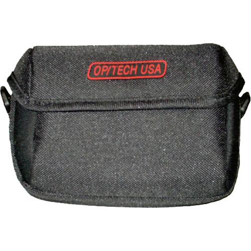 Product description The OP/TECH USA Hipster Pouch Large (Black) is a horizontal case designed to carry and protect a compact digital camera and accessories. It is a nylon case with a neoprene inner panel that expands when needed. A front pocket offers additional storage for media cards, batteries and more, It is carried by a removable webbed neck/shoulder strap or a double-locking touch fastener belt clip. - Construction