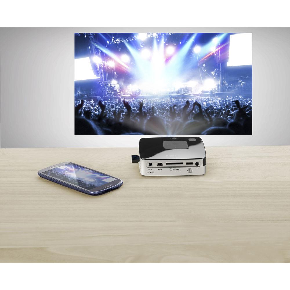 Take the show on the road with the Philips PicoPix PPX3417 170-Lumen FWVGA DLP Pico Projector. It's able to project an image up to 120" diagonal with its LED, which has a maximum brightness of 170 lumens. This LED has an operating life of approximately 30,000 hours and delivers an 854 x 480 native resolution.