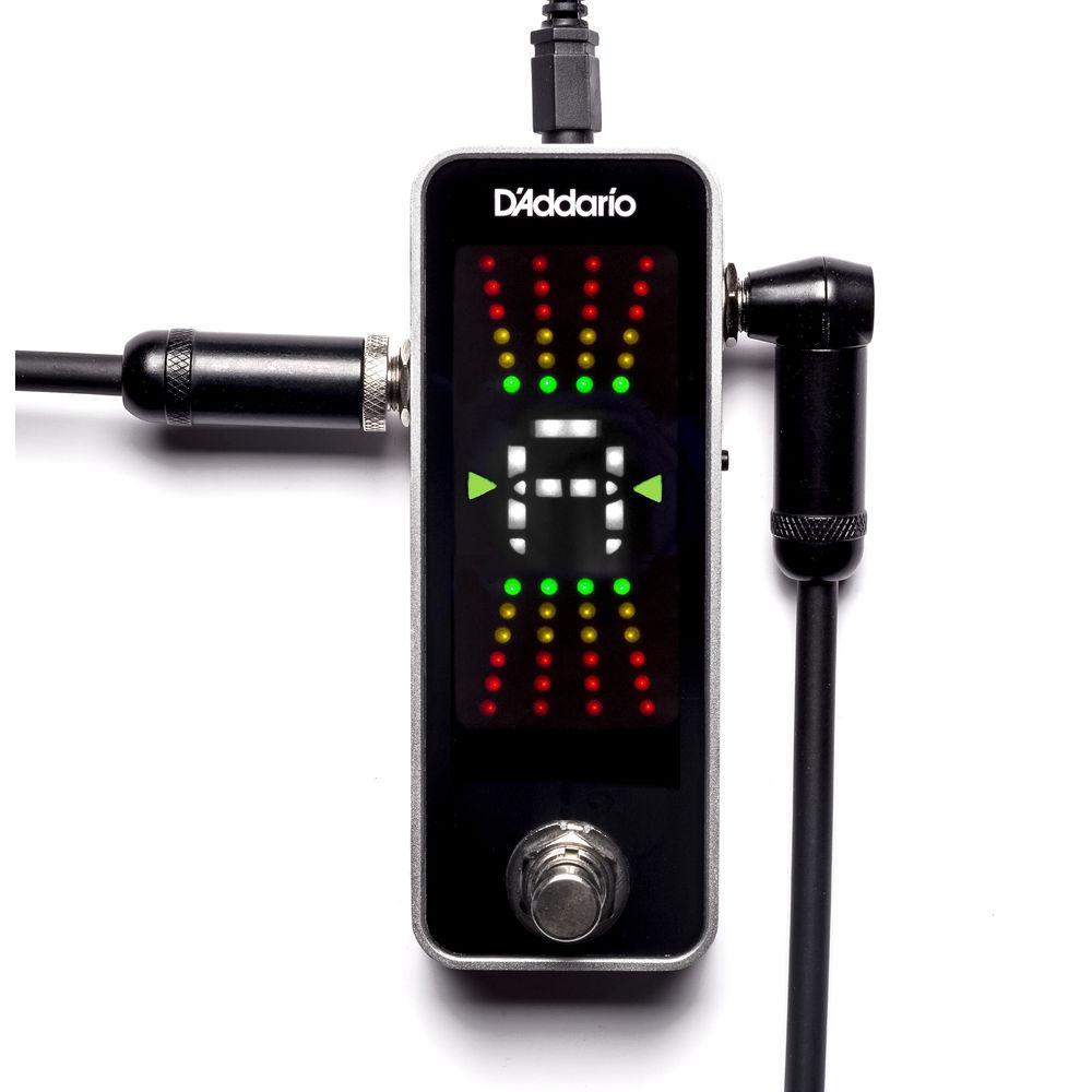 Product description The Chromatic Pedal Tuner from D’Addario is a slim, stompbox-style chromatic tuner designed for use with 1/4”-connected instruments. Tuning status is easily seen, due to its large, full-color vertical display, which shows the note name and red, yellow, and green segments.The pedal’s 32-bit processor yields fast and accurate note detection. Tuning accuracy is to 0.05 cents. The tuner can be calibrated via the Pitch button on the side of the pedal.An aluminum enclosure and true bypass switching make it ready for use in touring, commercial facilities, music lessons, and home studios. The D'Addario Chromatic Pedal Tuner can be powered by a 9V battery (included) or 9 VDC power supply (available separately). -