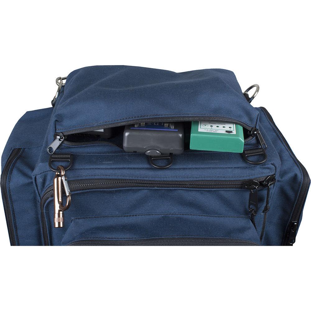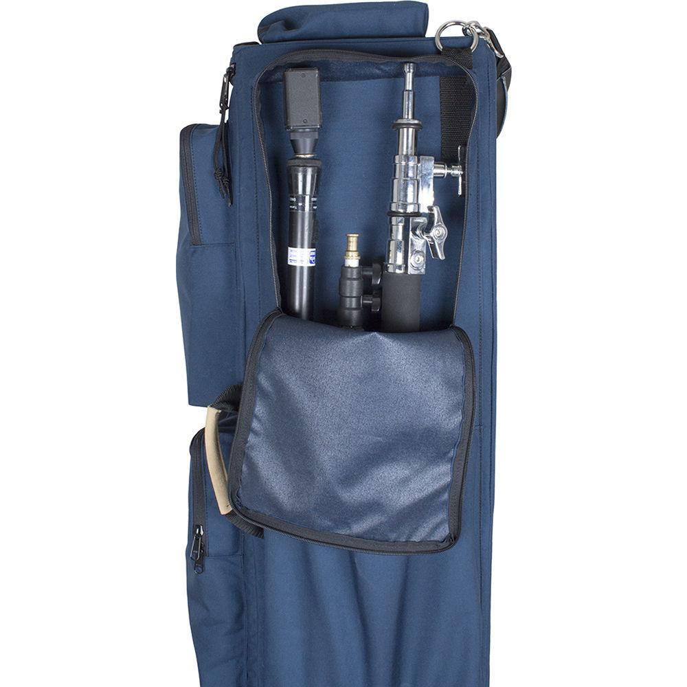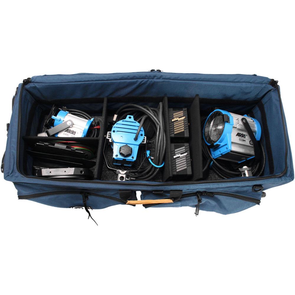 Product description The Porta Brace WPC-3OR Wheeled Production Case, Large (Signature Blue) is made for transporting all kinds of heavy loads for studio, audio, video and film equipment. The cases are designed to be used for handling gear on location as well as transporting apparatus to the job site. They are constructed of a strong ridged interior frame covered with 1000 denier Cordura nylon fabric, with padded protection all around. The WPC-3OR has off-road inline skate wheels with strong steel axles for improved stability and traction. A leather pull handle is included for portability. A divider kit is provided which allows customizing of an infinite number of storage compartments. A LI-GLW illumination strip light pocket is included. - Case Basics