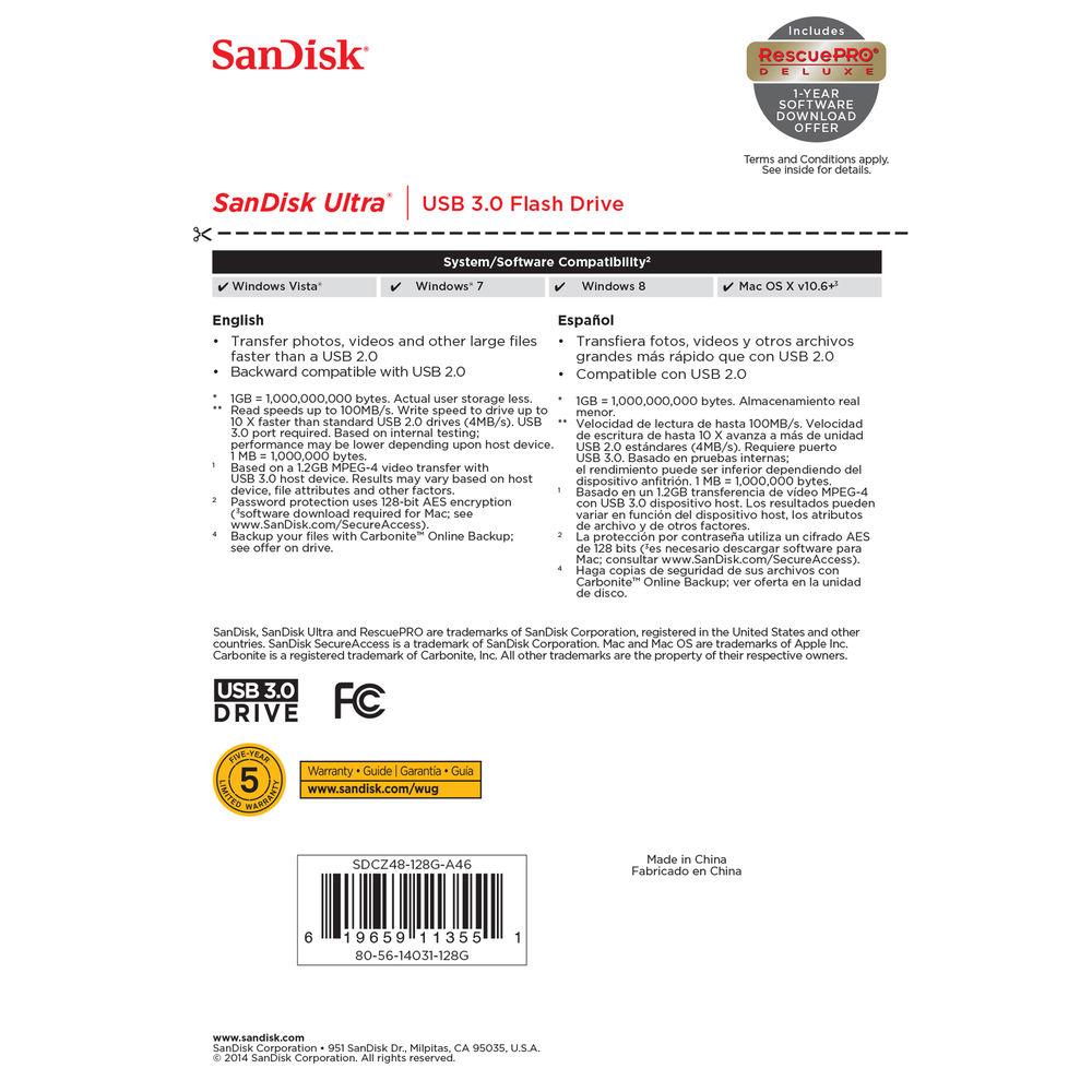 UPC: 619659113551 In the Box SanDisk 128GB Ultra USB 3.0 Flash Drive Limited 5-Year Warranty Table of Contents