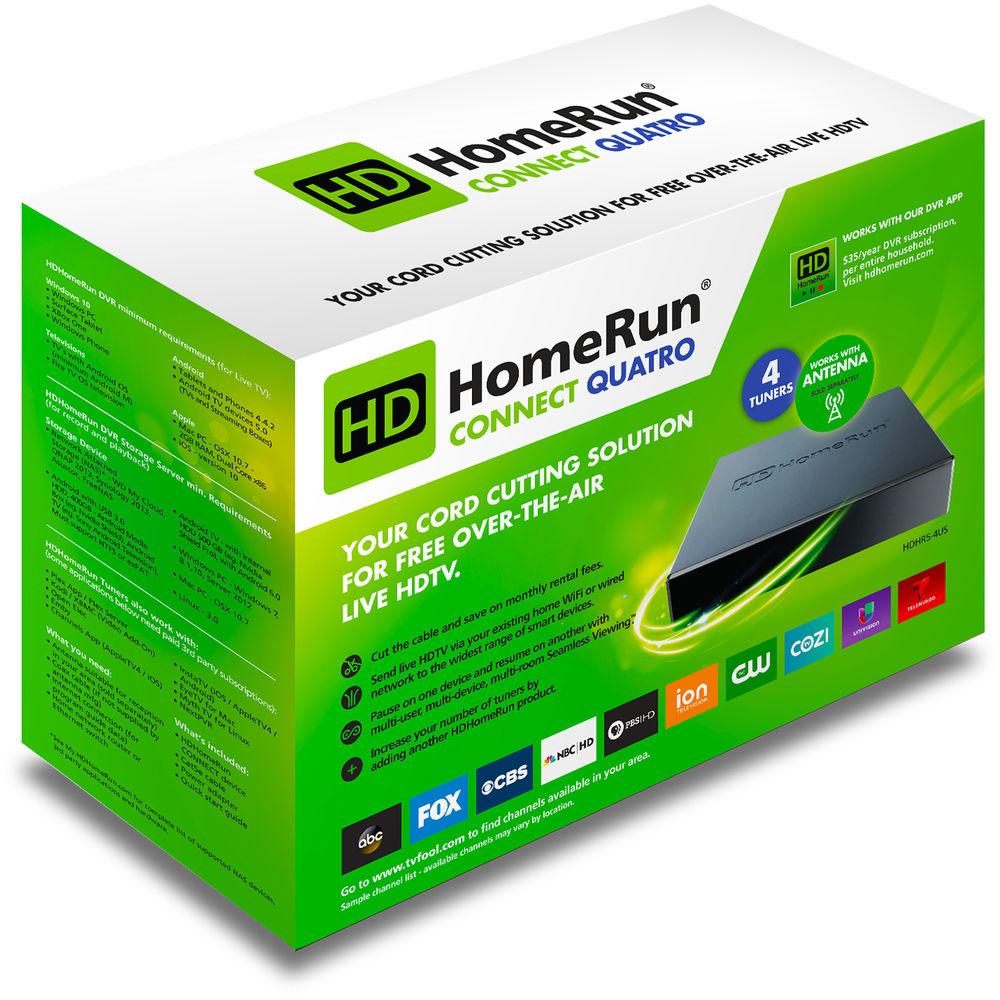 Product description CES 2018: Cut the Cord with the Silicon Dust HD HomeRun CONNECT Quatro Read More Cut the cord with the HDHomeRun CONNECT QUATRO from SiliconDust. The CONNECT QUATRO uses your HDTV antenna to accept over-the-air HDTV signals and allows you to distribute that signal to up to 4 devices using your home's existing Wi-Fi or Ethernet network. With the HDHomeRun DVR service (subscription required), you can even record, pause, rewind, and schedule your favorite shows to be saved on your hard drive or NAS device. The HDHomeRun CONNECT QUATRO can also be used in conjunction with an additional HDHomeRun CONNECT QUATRO devices to stream to multiple devices all at the same time. -