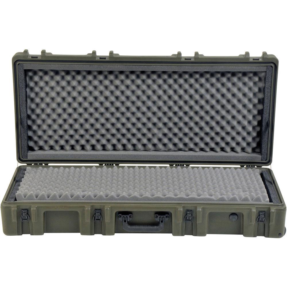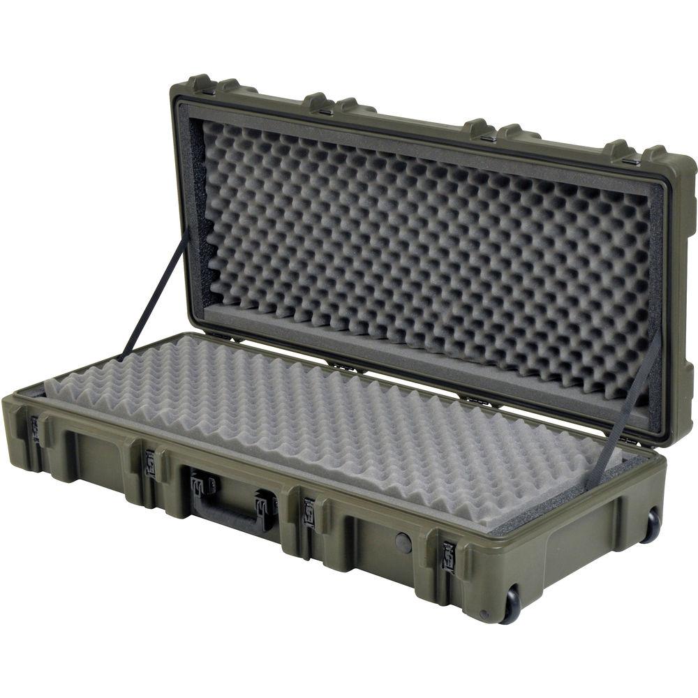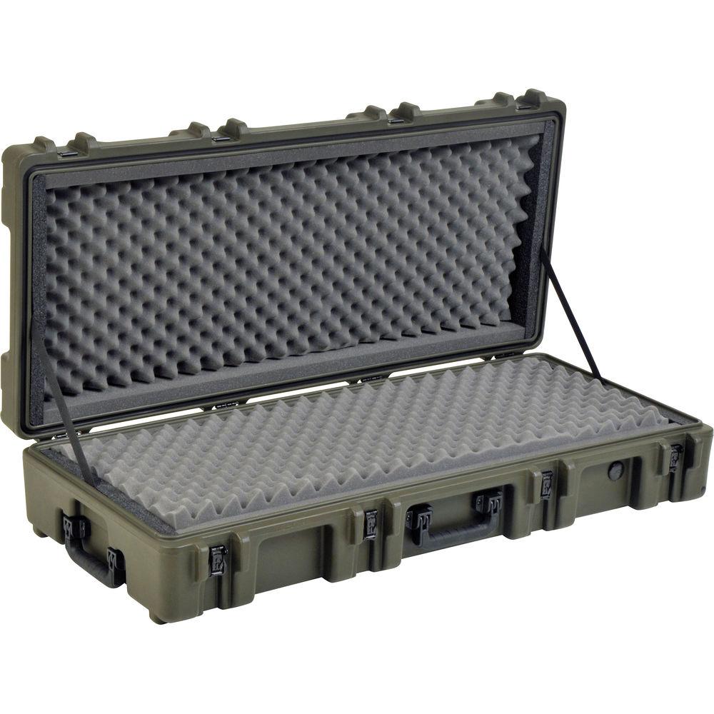 Product description The military green SKB 2R4417-8 Roto Mil-Std 8" Deep Waterproof Case with Dual Layer Foam case is designed to meet the military most demanding specifications, they are roto-molded for strength and durability, airtight and waterproof with solid stainless steel latches and hinges that will withstand the most demanding shipping conditions. he 2R Mil-Std. Cases are molded of (LLDPE) polyethylene impact resistant / UV stabilized material and meet or exceed MIL-STD 810 and MIL-C-4150J specifications. These cases come with a double-layer convoluted foam interior, as well as TSA recognized and accepted locking latches in place of stainless steel padlockable latches. -