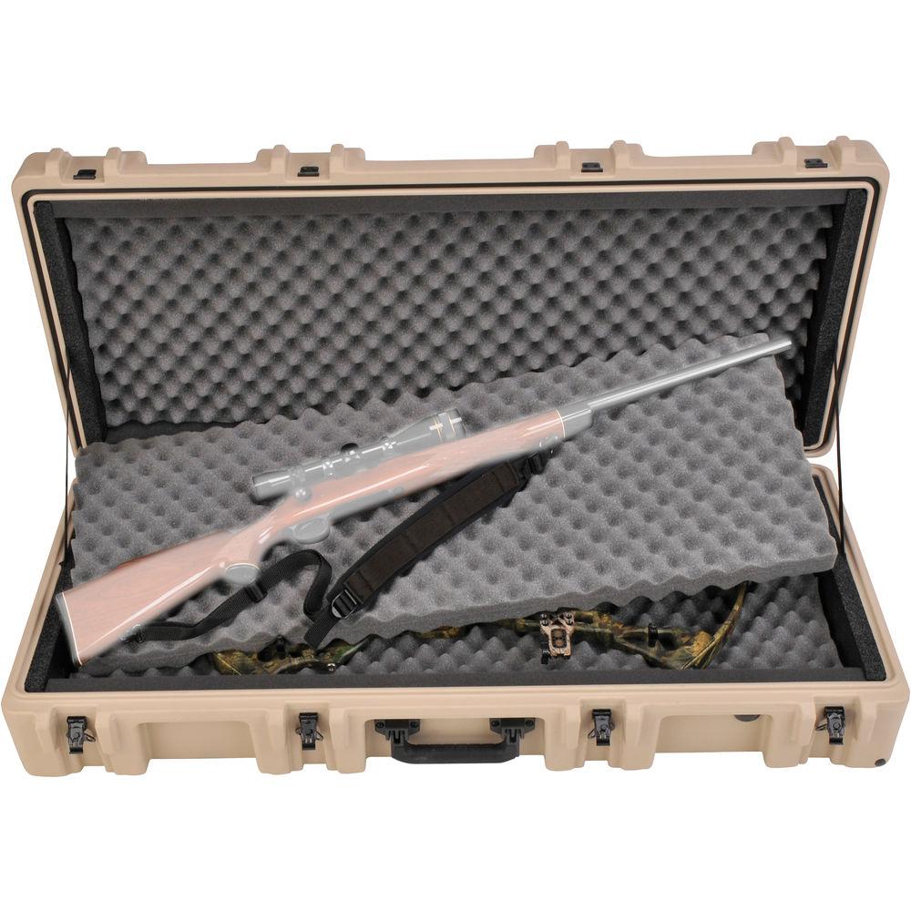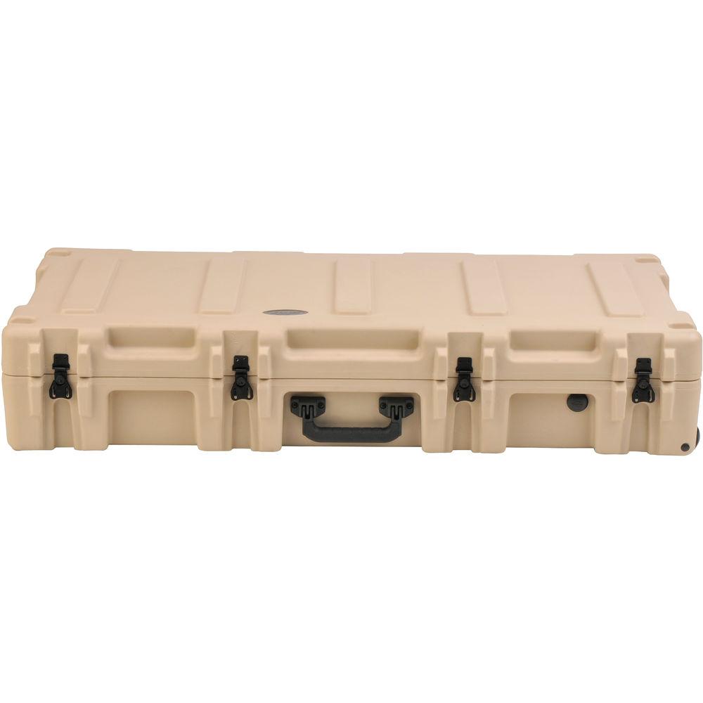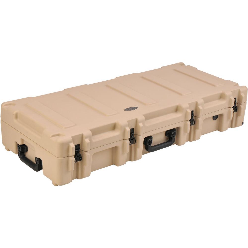 Product description The tan SKB 2R4417-8 Roto Mil-Std 8" Deep Waterproof Case with Dual Layer Foam case is designed to meet the military most demanding specifications, they are roto-molded for strength and durability, airtight and waterproof with solid stainless steel latches and hinges that will withstand the most demanding shipping conditions. he 2R Mil-Std. Cases are molded of (LLDPE) polyethylene impact resistant / UV stabilized material and meet or exceed MIL-STD 810 and MIL-C-4150J specifications. These cases come with a double-layer convoluted foam interior, as well as TSA recognized and accepted locking latches in place of stainless steel padlockable latches. -