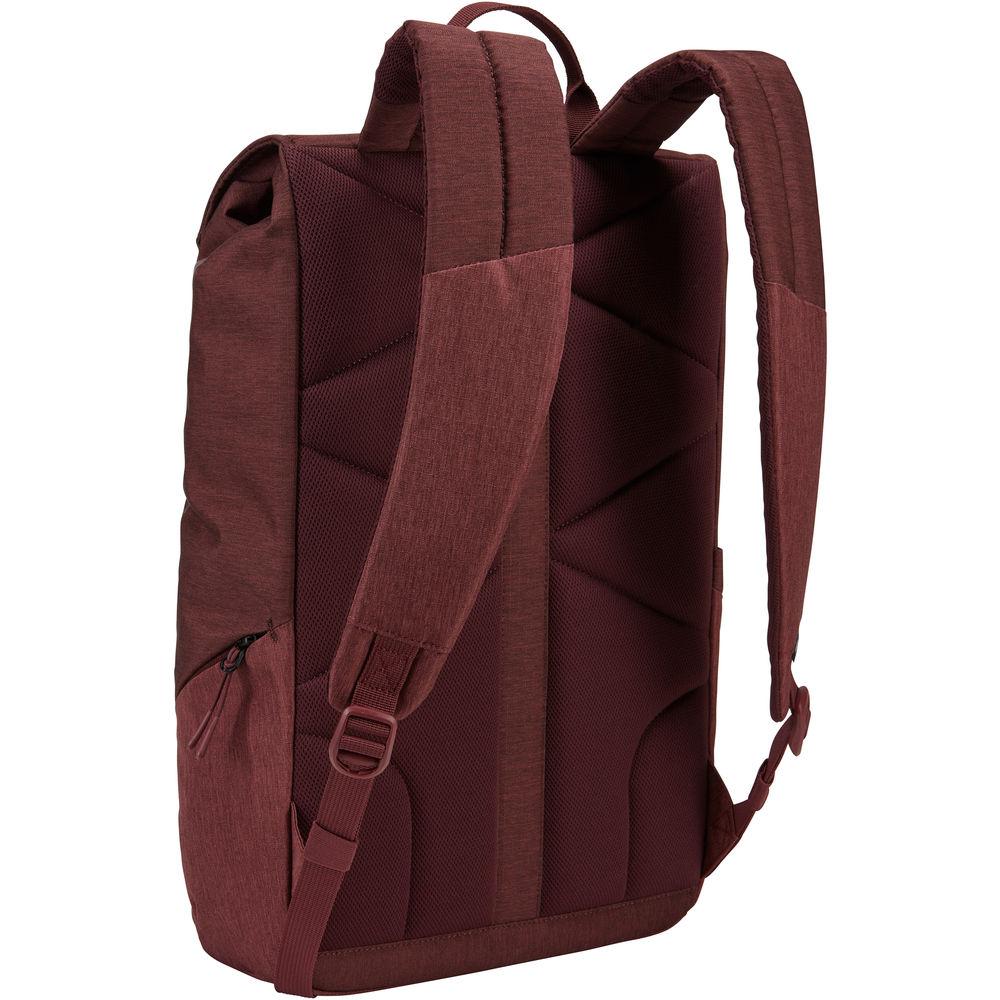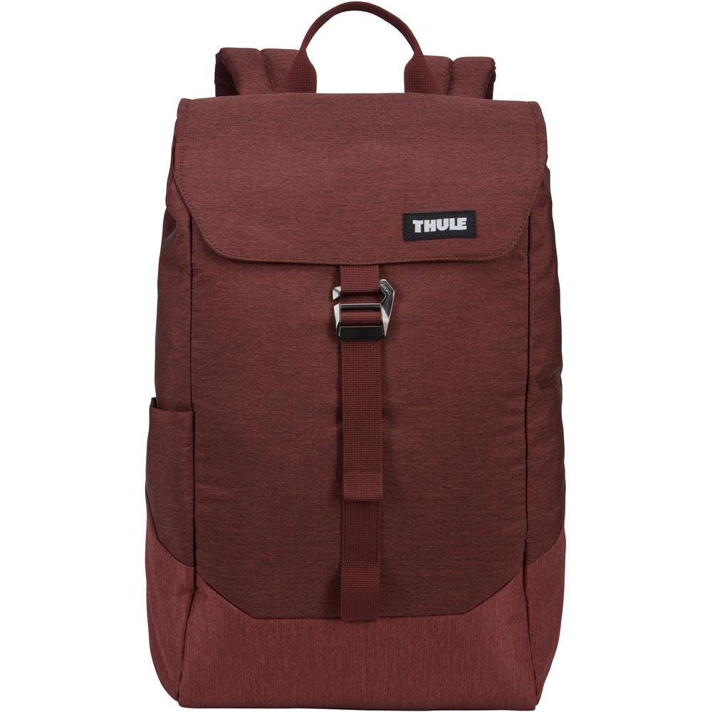 Product description The dark burgundy Thule Lithos 16L Backpack features a padded back panel and shoulder straps. Made of polyester ripstop, there are dedicated, padded slip pockets for a 14" Windows laptop or a 15" MacBook, and a 10.1" tablet. Stay visible in low light conditions, thanks to the integrated blinky light lash point. There is a main compartment with an adjustable flap closure with a 9-hook buckle, a zippered interior mesh pocket, and a side pocket. Features - Safeguard a 14" Windows laptop or a 15" MacBook in a padded, elevated storage pocket